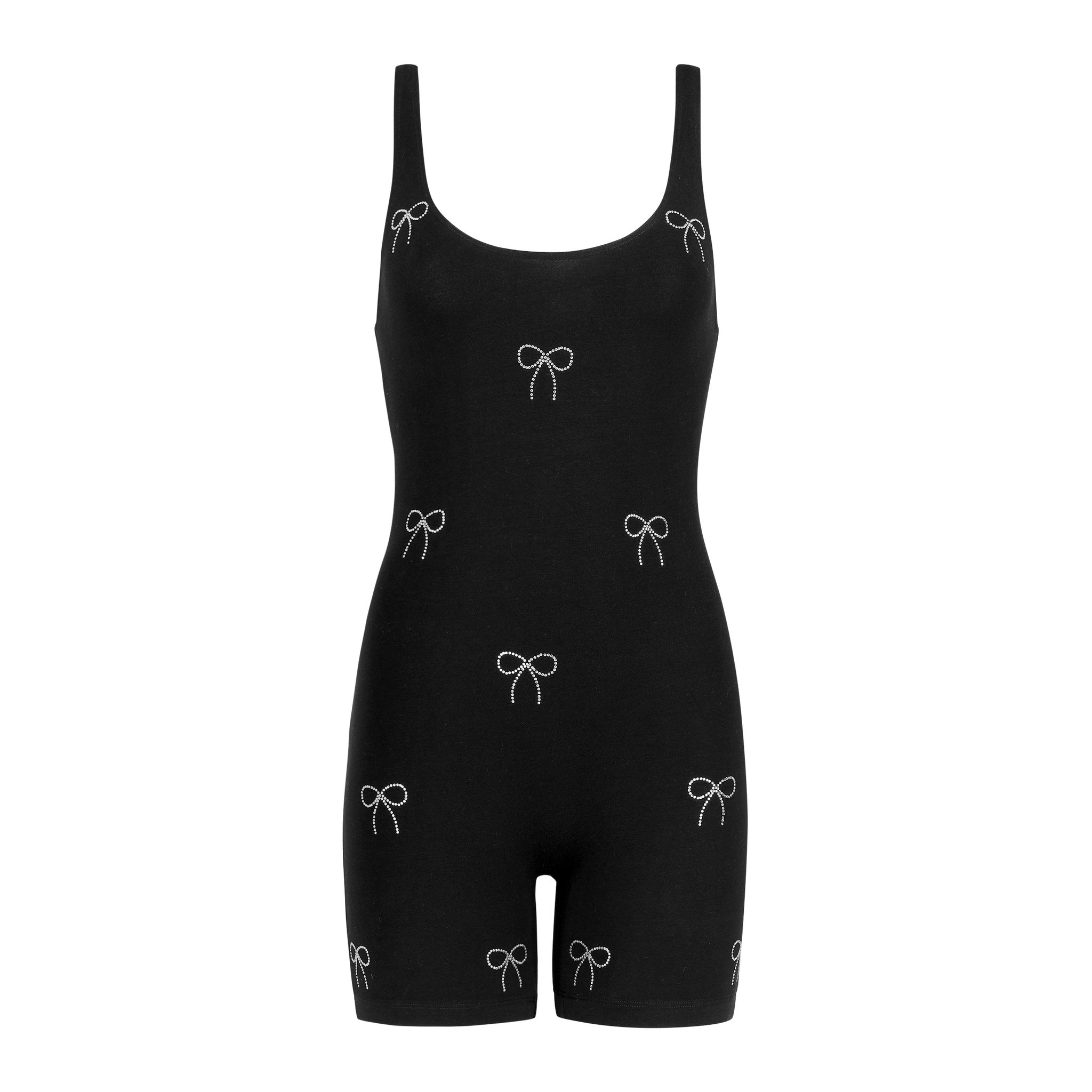 Black cotton spandex jumper with crystal bows.